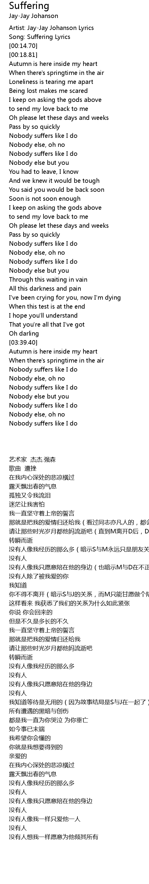 Song: Suffering Lyrics |