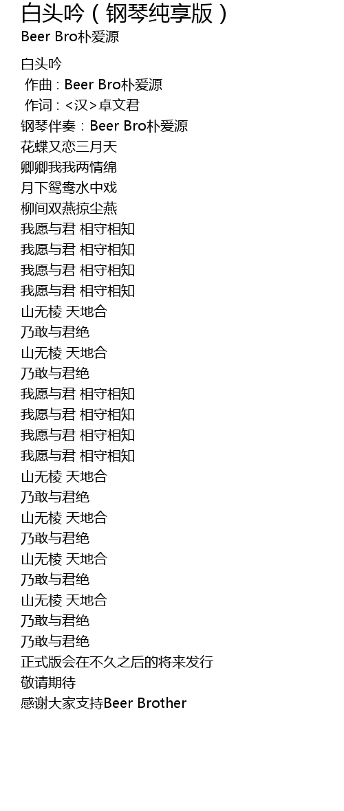 | Song | 白头吟(钢琴纯享版) |