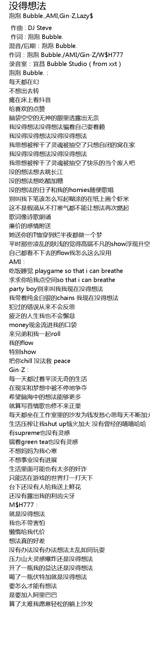 | [00:02.000] | 作词:泡泡 Bubble./AMI/Gin-Z/W$H777 |