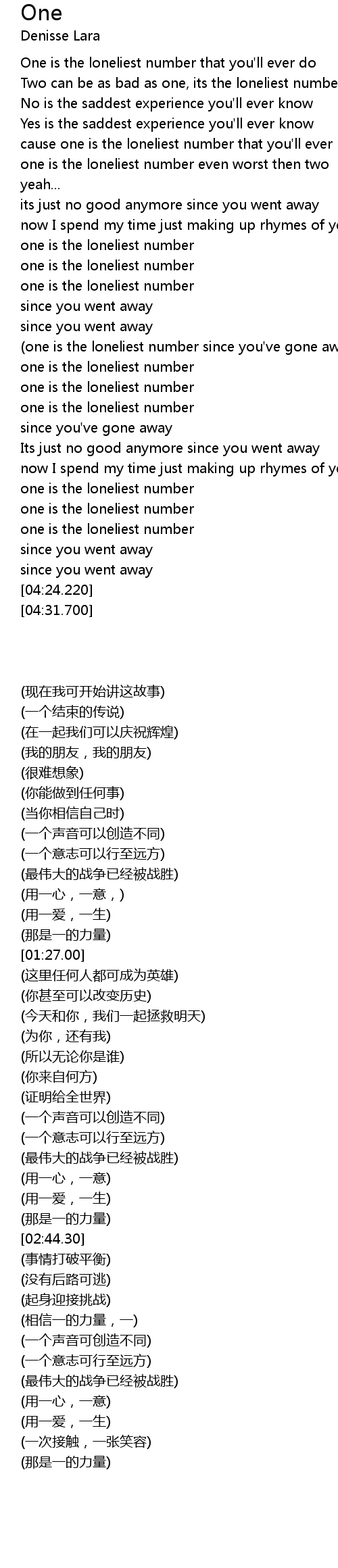 | [00:40.269] | Two can be as bad as one, its the loneliest number since the number one |