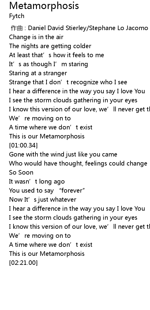 | [00:56.35] | This is our Metamorphosis |