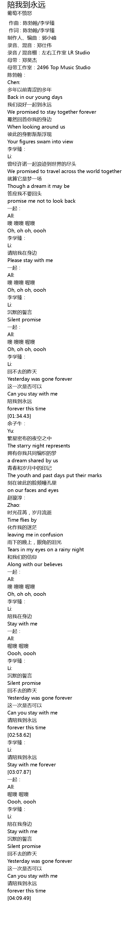 | [02:52.45] | qǐng péi wǒ dào yǒng yuǎn |