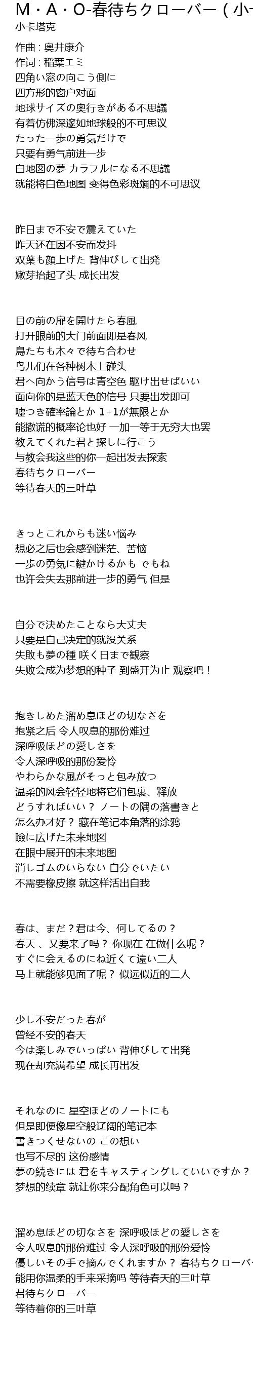 | Song | M・A・O-春待ちクローバー(小卡remix)(小卡塔克 remix) |