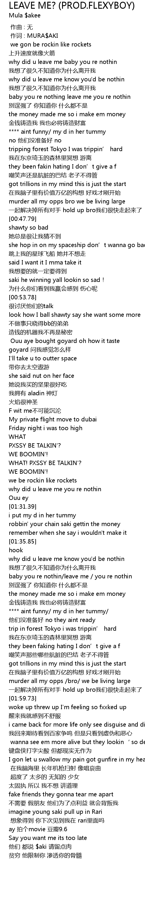 | [01:56.76] | murder all my opps /bro/ we be living large |