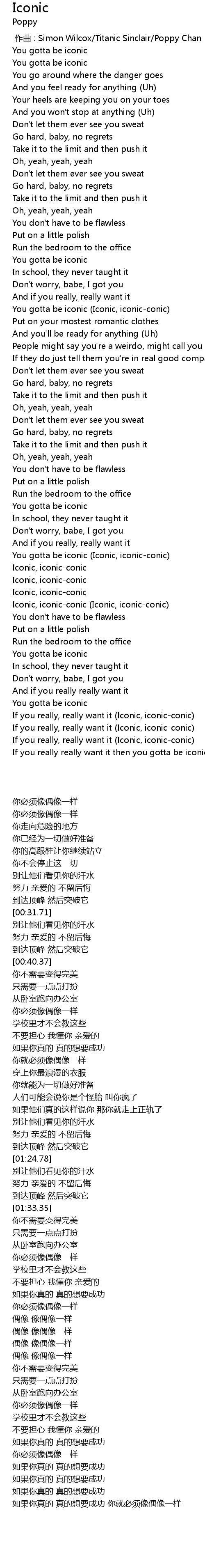 | [02:36.28] | If you really, really want it Iconic, iconicconic |