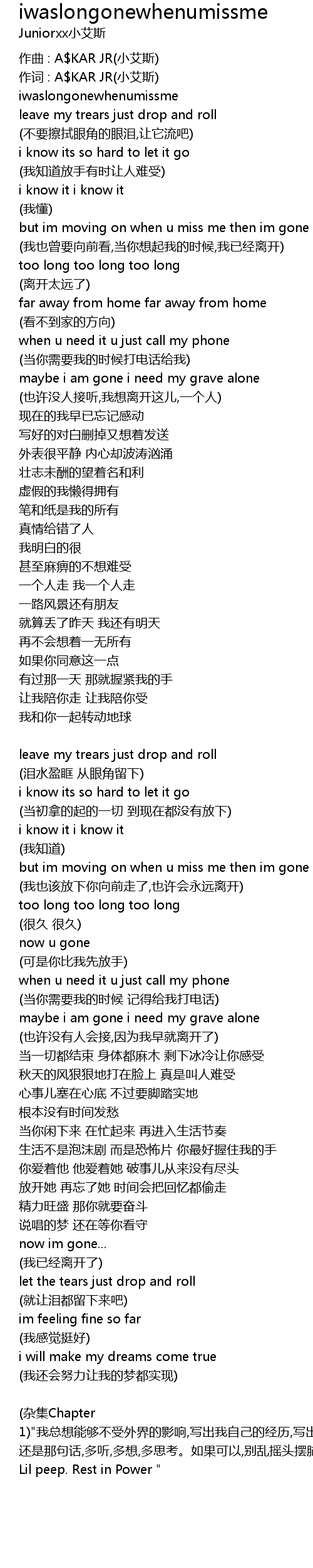 | zá jí Chapter 1" wǒ zǒng xiǎng néng gòu bù shòu wài jiè de yǐng xiǎng, xiě chū wǒ zì jǐ de jīng lì, xiě chū wǒ zì jǐ de gǎn shòu. yīn wèi zì sī de lái shuō, wǒ de zuò pǐn bù zhǐ shì wèi le bié rén ér chuàng zuò, ér shì yǒu xiǎng wǒ néng zài dào le yí dìng shí jiān de shí hòu, néng chóng tóu huí lái yī shǒu shǒu tīng wǒ de zuò pǐn, néng gòu gǎn shòu dào zì jǐ zhēn shí de chéng zhǎng jīng lì. zhè yě shì wǒ xiǎng dào' zá jí' zhè gè diǎn de yuán yīn. zhè shǒu gē běn lái shì yī shǒu hěn' tòng kǔ' de shī liàn gē ér, kě shì wǒ hòu lái bǎ cí chóng xīn dōu gǎi le, jiā rù le gèng duō guān yú xī wàng, hé duì míng tiān de chōng jǐng.. shuí bù xiǎng zì jǐ yì tiān bǐ yì tiān guò de hǎo? hái shì nà jù huà, duō tīng, duō xiǎng, duō sī kǎo. rú guǒ kě yǐ, bié luàn yáo tóu bǎi nǎo, duō kàn kàn gē cí. yīn wèi yīn yuè shì kě yǐ chuán dì xìn xī hé néng liàng de. líng gǎn lái zì yǐ shì EmoRapper Lil peep. Rest in Power " |