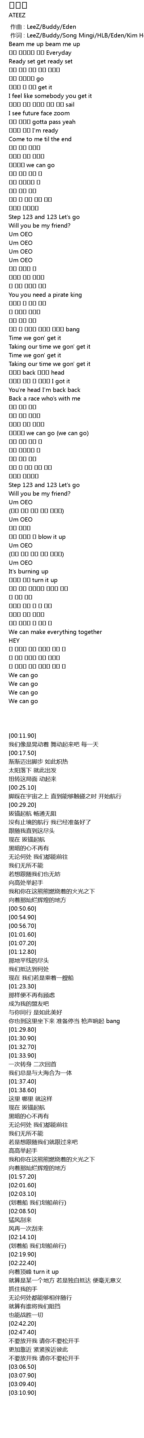 | [00:01.000] | 作词 : LeeZ/Buddy/Song Mingi/HLB/Eden/Kim Hongjoong |