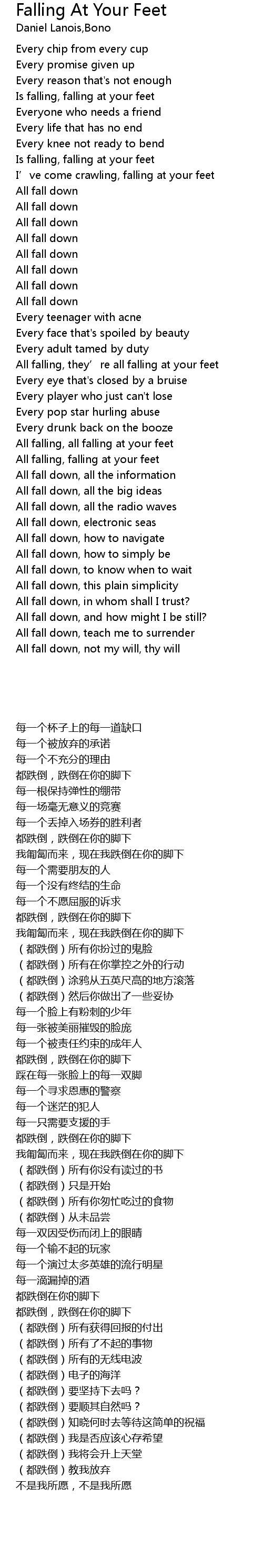 | Song | Falling At Your Feet |