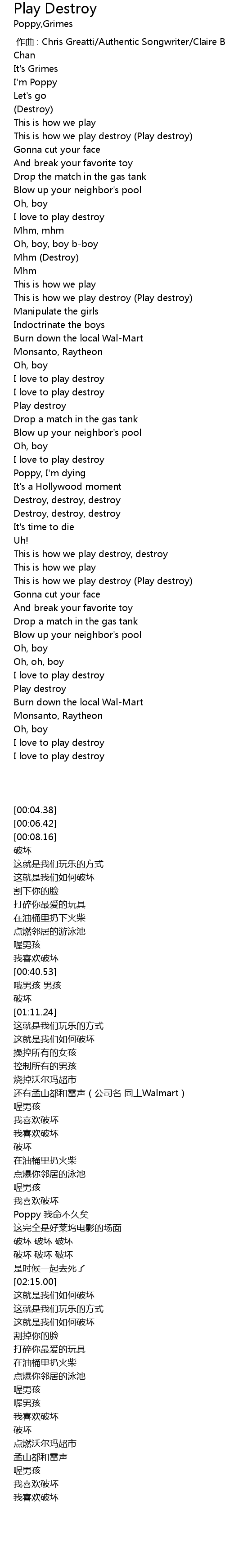 | [00:00.000] | zuò qǔ : Chris Greatti Authentic Songwriter Claire Boucher Poppy Chan |