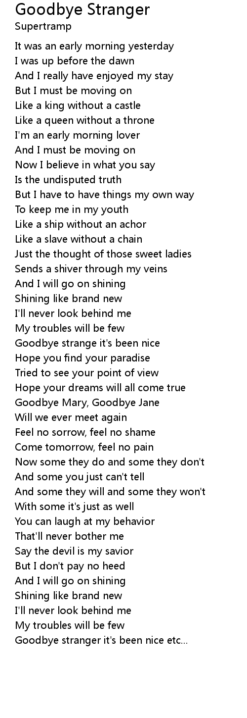 Goodbye stranger it's been nice etc... |