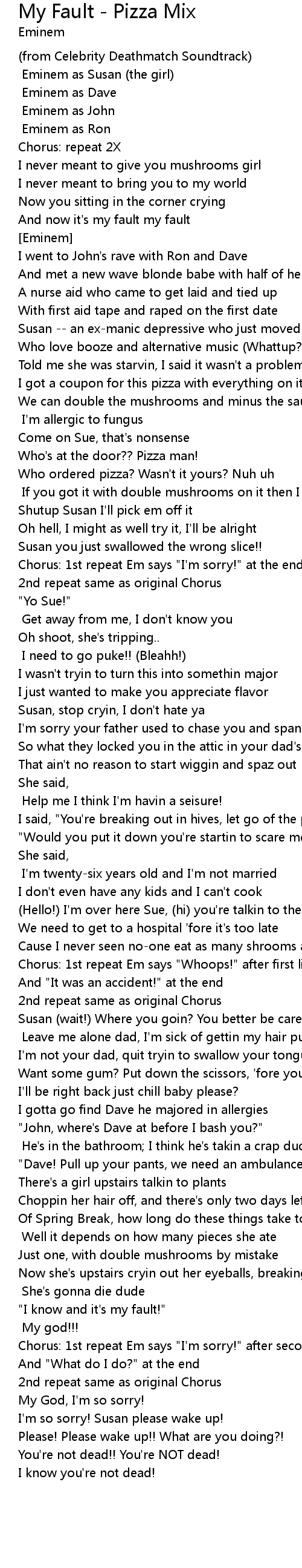 Chorus: 1st repeat Em says "I'm sorry!" after second line