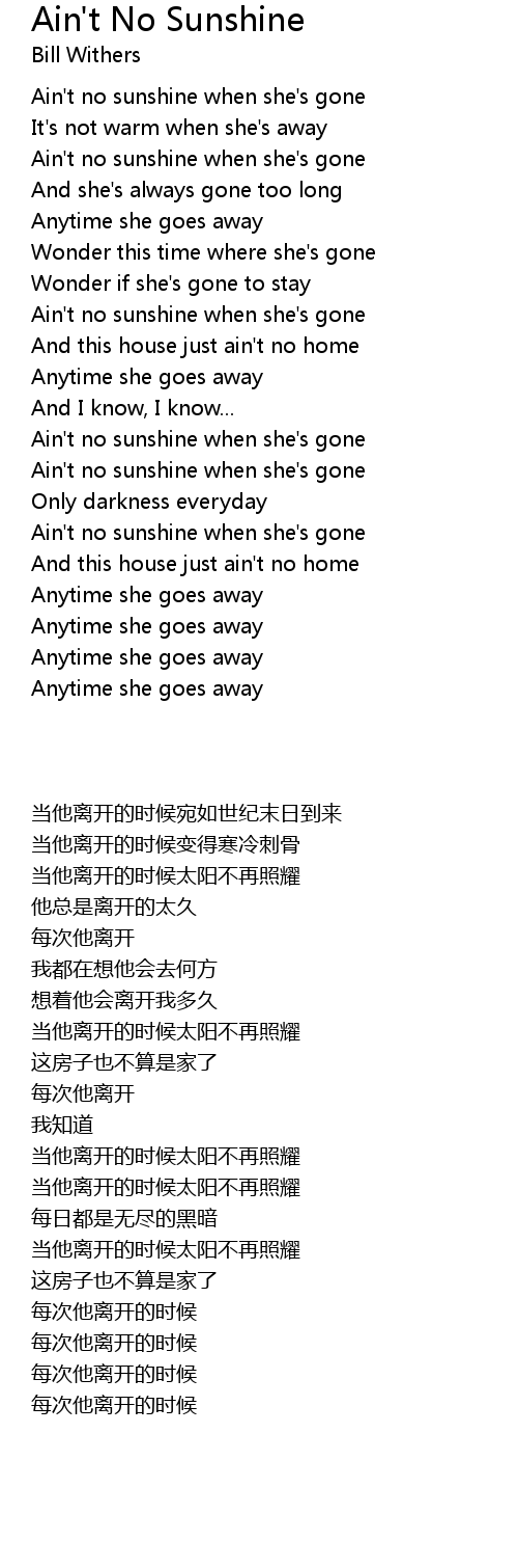 Ain't No Sunshine Lyrics