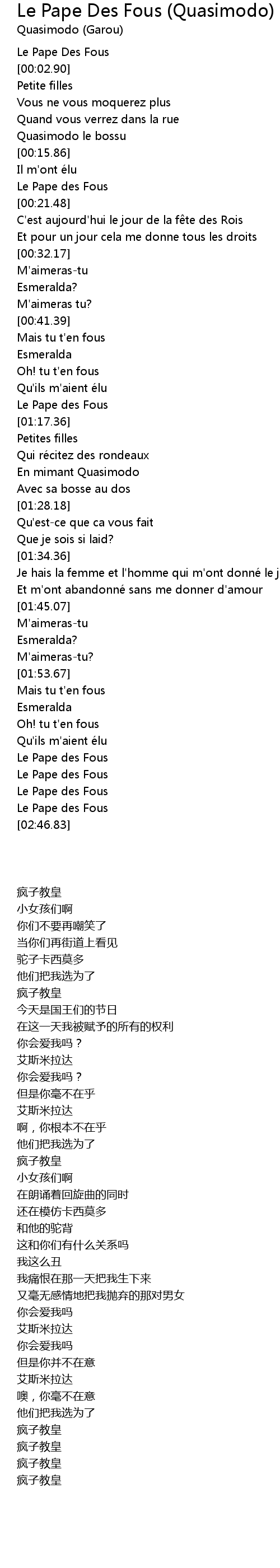 | [01:34.70] | Je hais la femme et l' homme qui m' ont donné le jour |