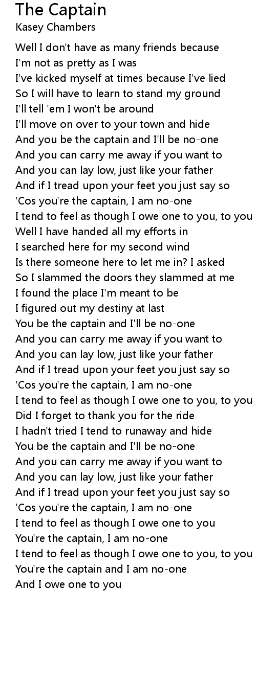 'Cos you're the captain, I am no-one |