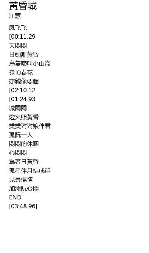 | [03:32.38][02:10.12][01:08.53] | 啊~黃昏引動阮青春 |