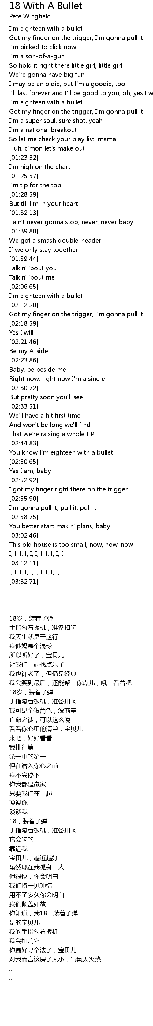 I'm eighteen with a bullet |