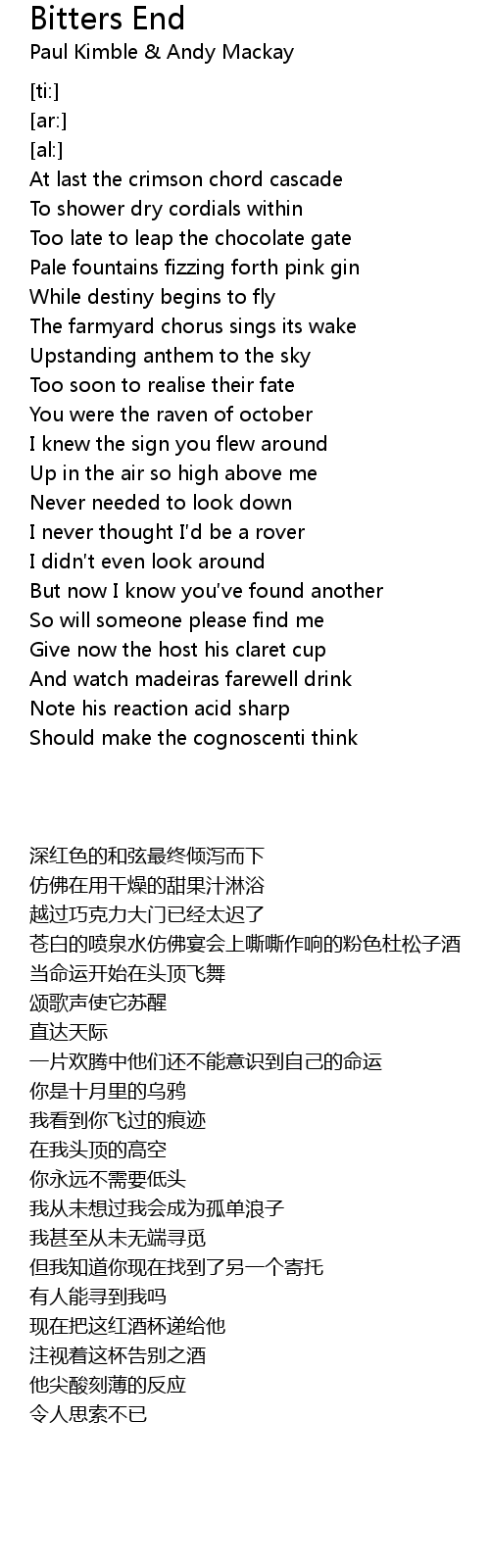 | Song | Bitters End |