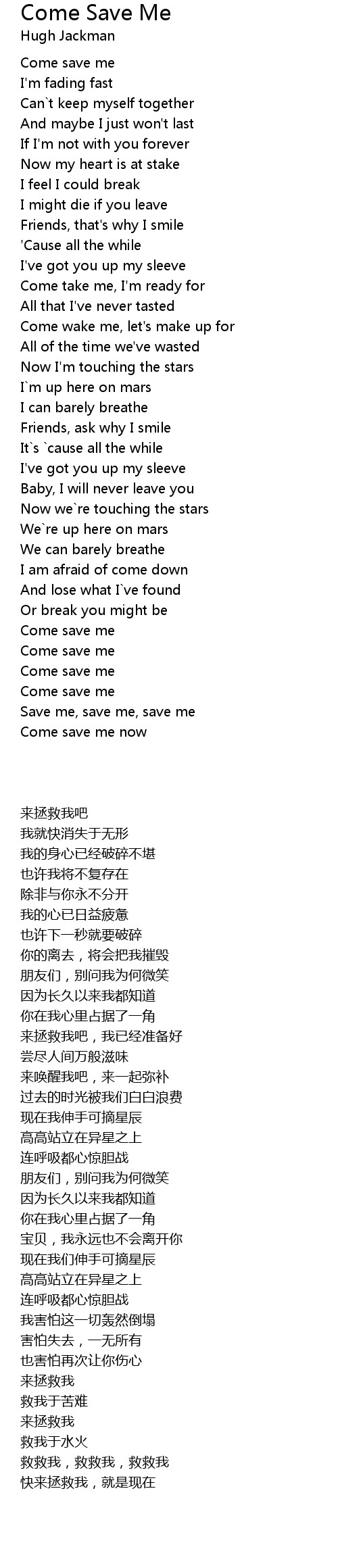 Come save me now |