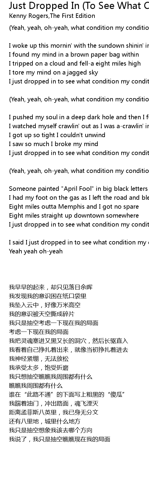 (Yeah, yeah, oh-yeah, what condition my condition was in) |
