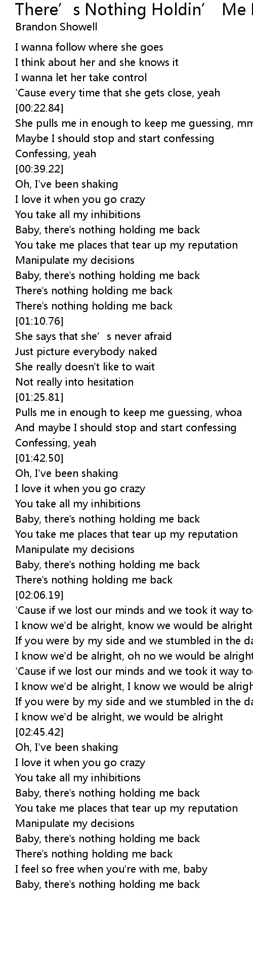 | [00:45.20] | Baby, there' s nothing holding me back |