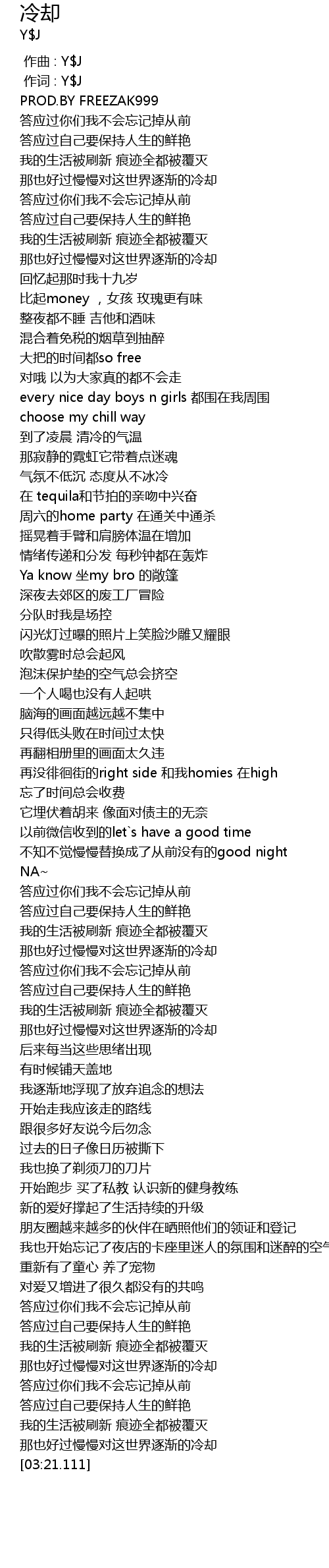 | [00:00.000] | 作词 : Y$J |