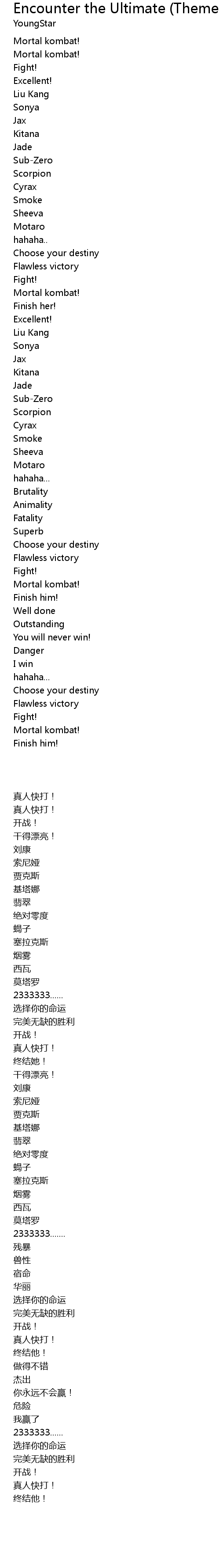| Song | Encounter the Ultimate (Theme from Mortal Kombat) |