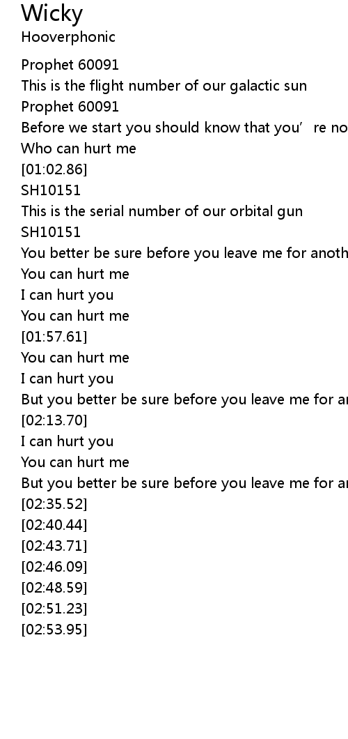 | [02:07.45] | But you better be sure before you leave me for another one |