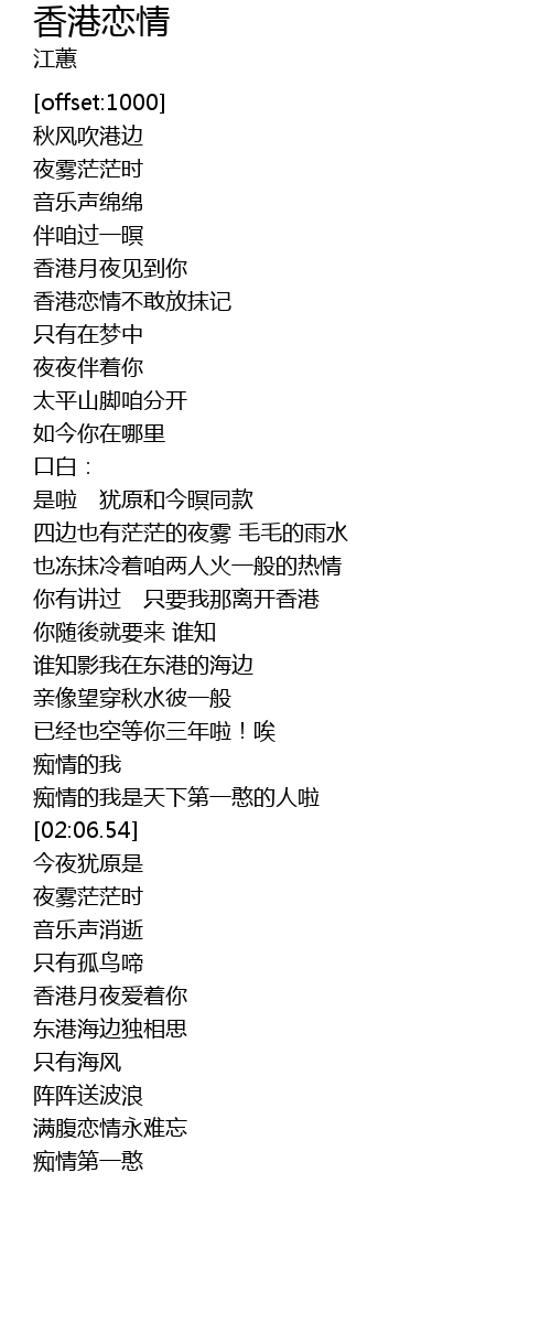 | [00:47.98] | 香港恋情不敢放抹记 |