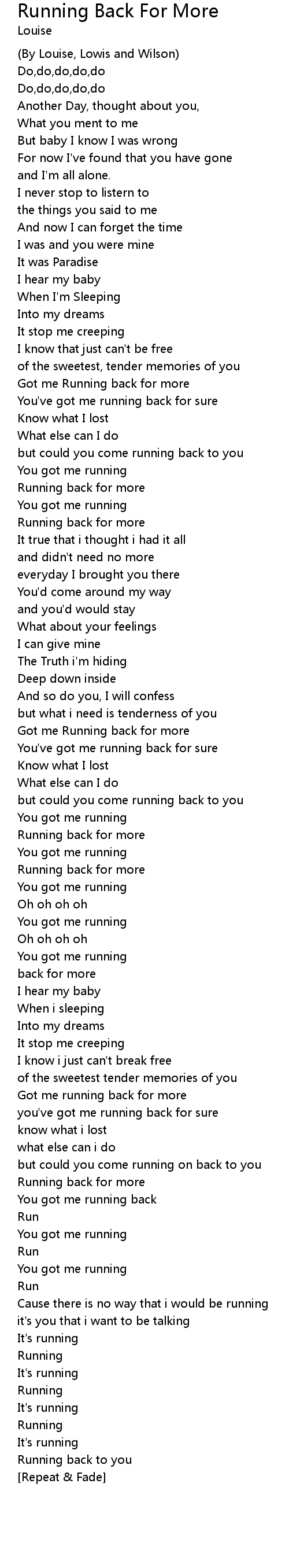 Got me Running back for more |