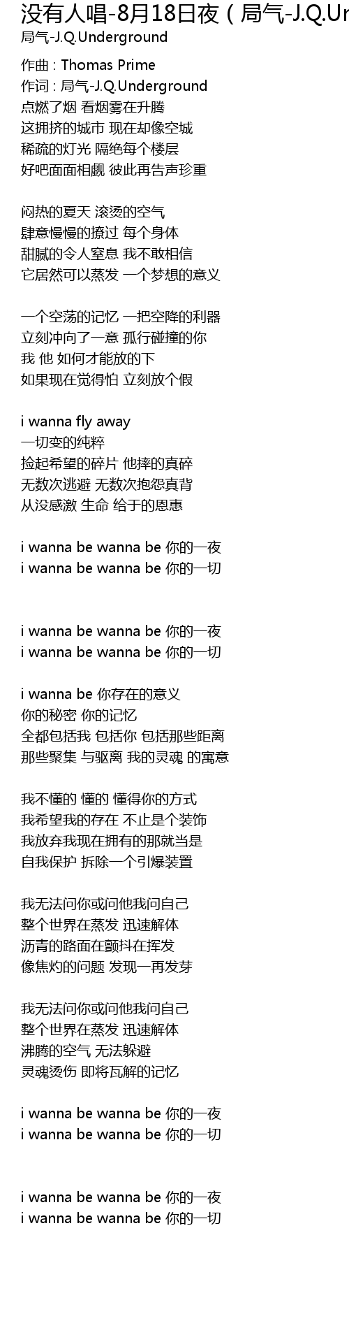 | Song | 没有人唱-8月18日夜(局气-J.Q.Underground remix) |