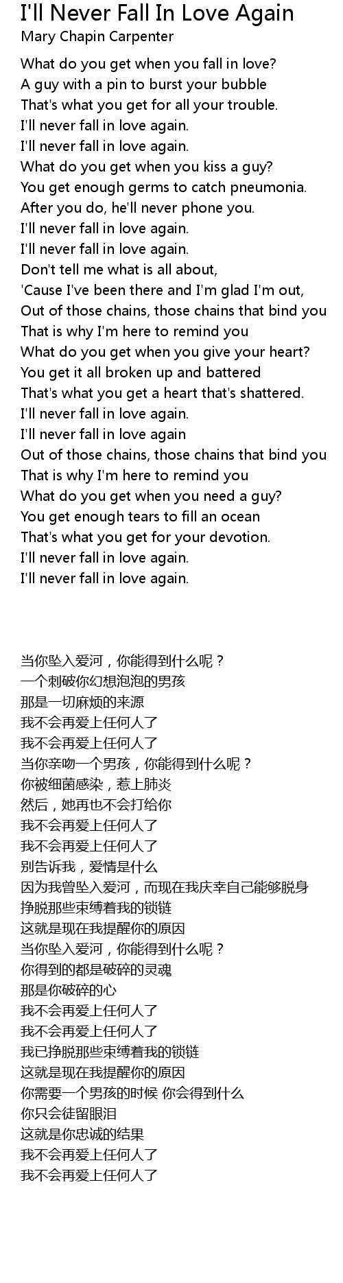 I'll never fall in love again. |