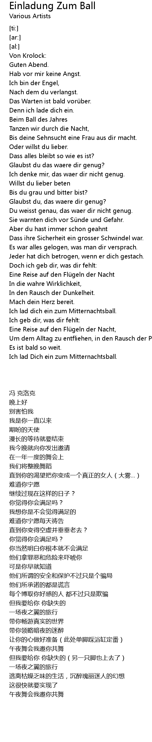| [01:47.29] | Ich lad dich ein zum Mitternachtsball. |