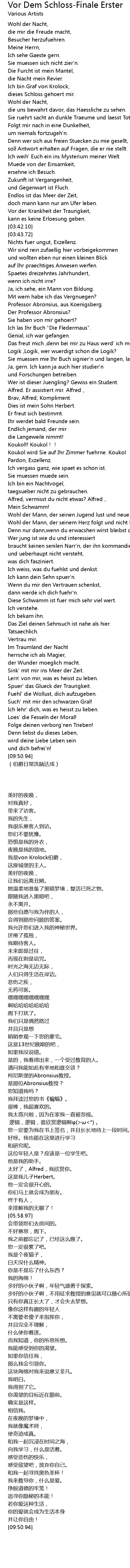 | [02:41.10] | Ich weih' Euch ein ins Mysterium meiner Welt. |