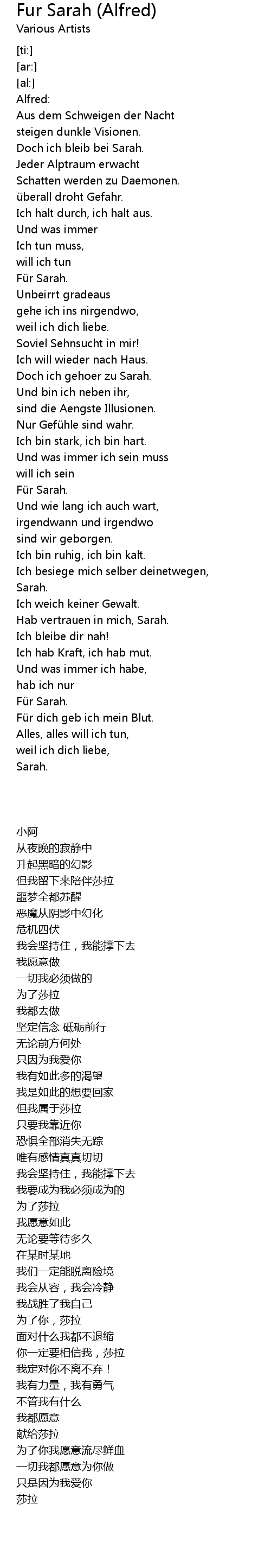 | [01:28.15] | Doch ich gehoer zu Sarah. |