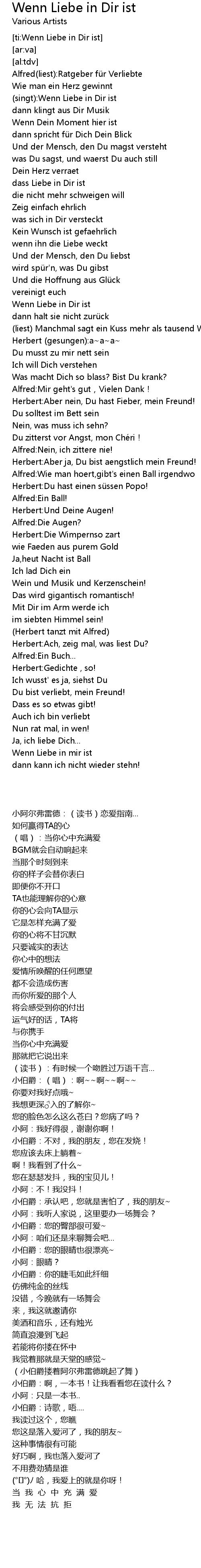 | [00:18.58] | (singt):Wenn Liebe in Dir ist |