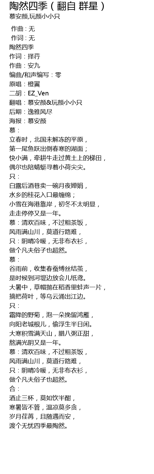 | [00:19.700] | fān chàng: mù ān yán wán yán xiǎo xiǎo zhǐ |