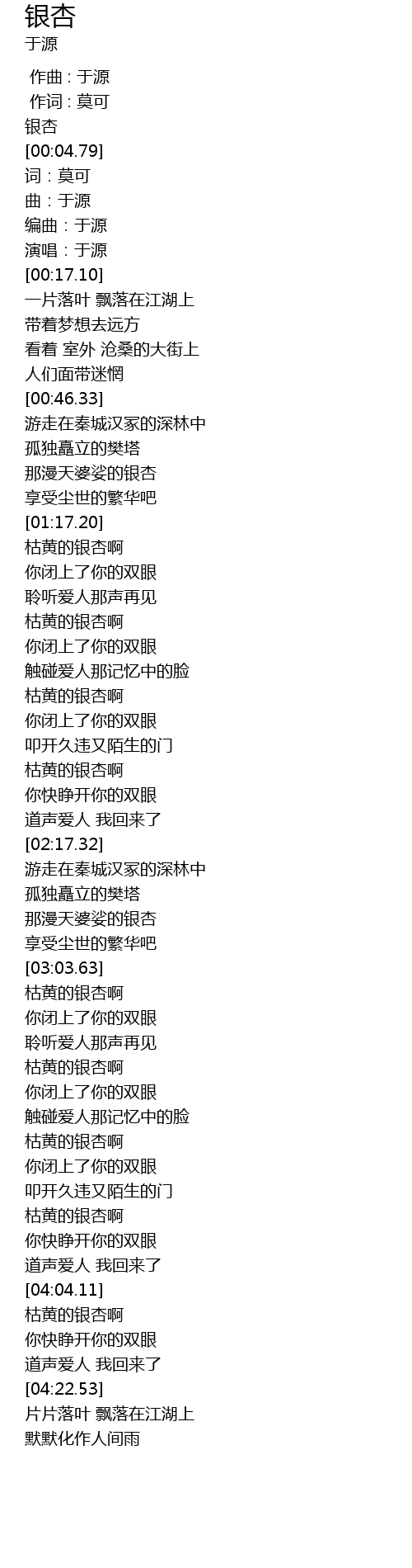 | [01:02.37] | 那漫天婆娑的银杏 |