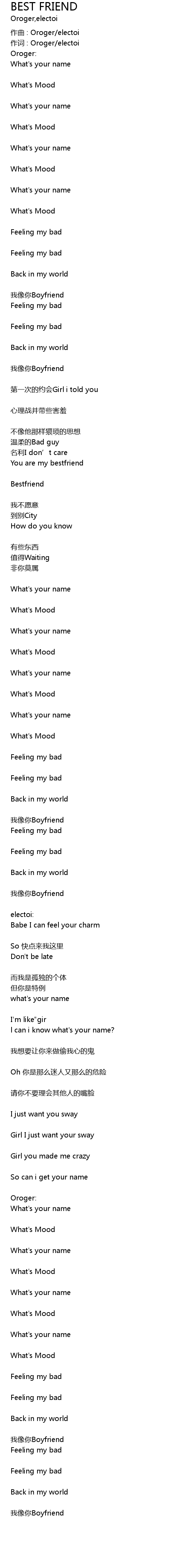 | 作词 : Oroger/electoi | |