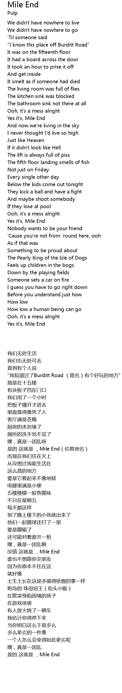 Yes it's, Mile End |