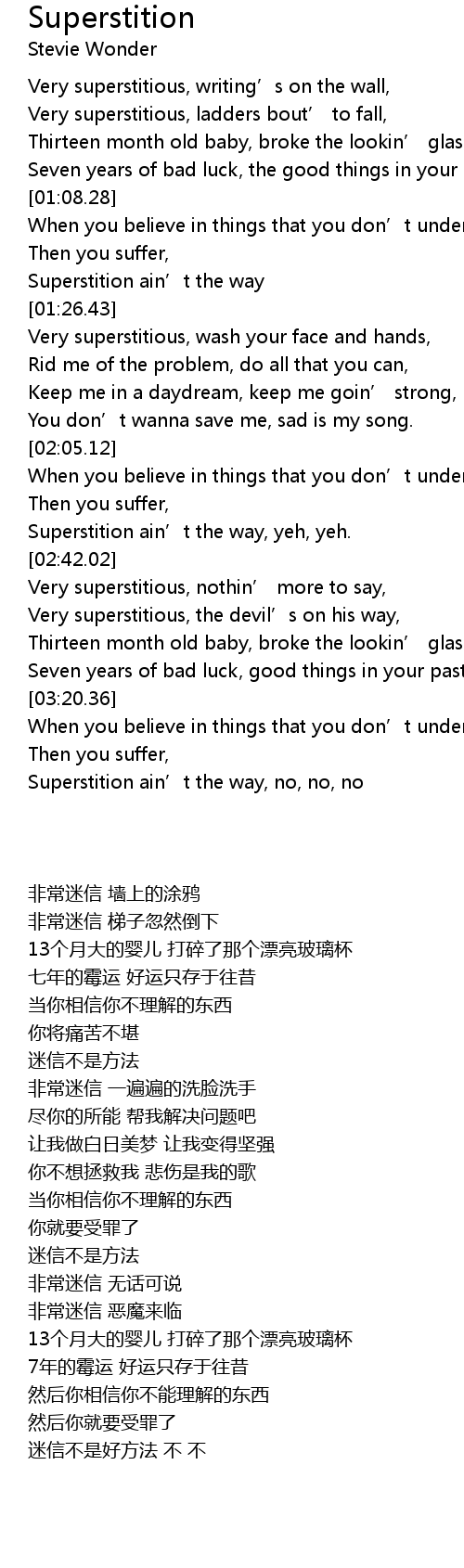 | [02:13.31] | Superstition ain' t the way, yeh, yeh. |