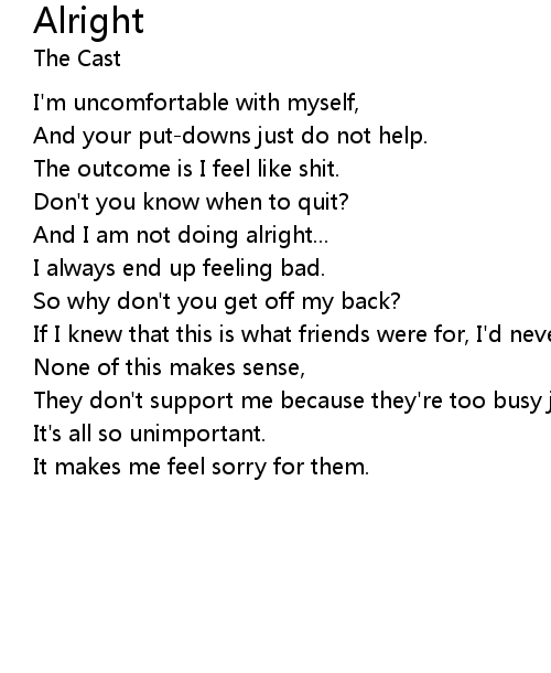 | And I am not doing alright... | |