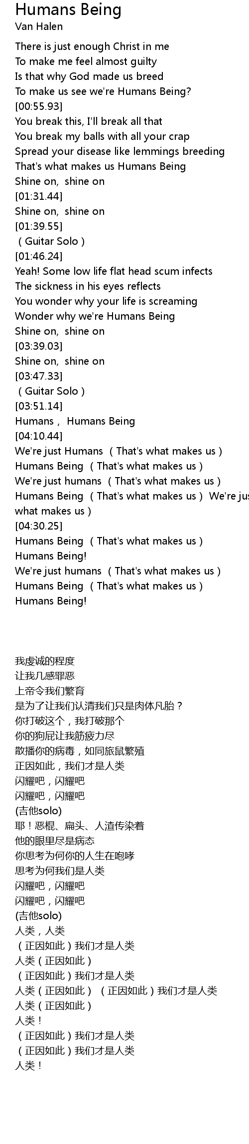 | [00:50.92] | To make us see we' re Humans Being? |