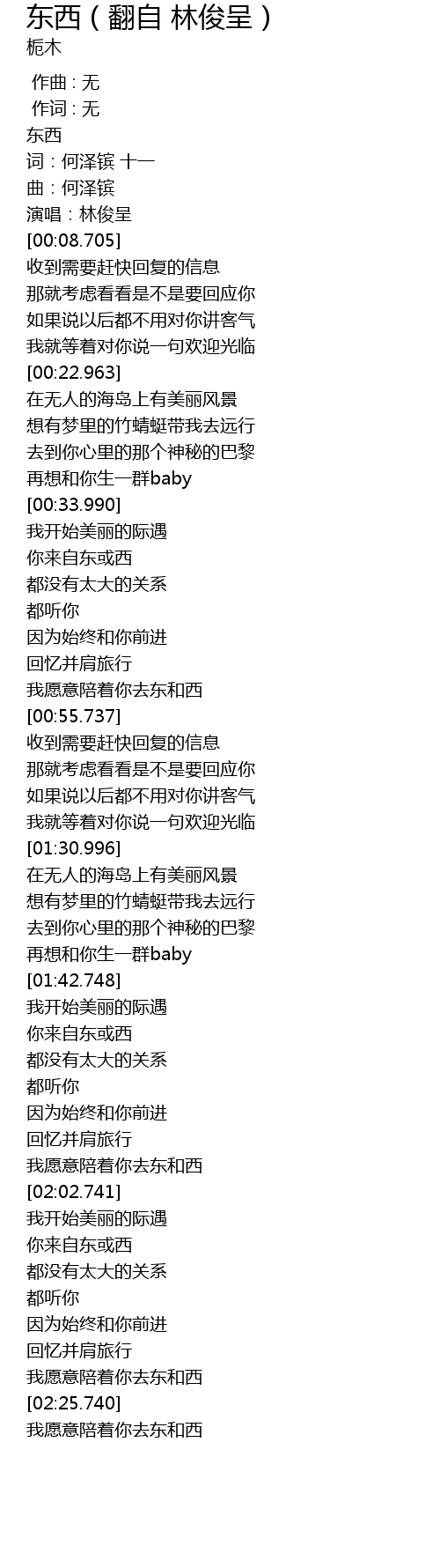 | [02:24.242] | 我愿意陪着你去东和西 |