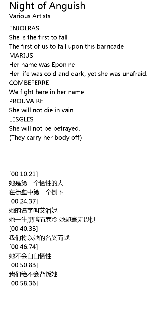 | [00:31.60] | Her life was cold and dark, yet she was unafraid. |