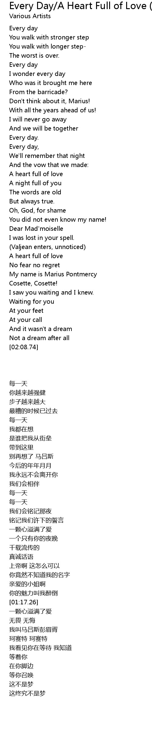 Every Day/A Heart Full of Love (Reprise) Lyrics