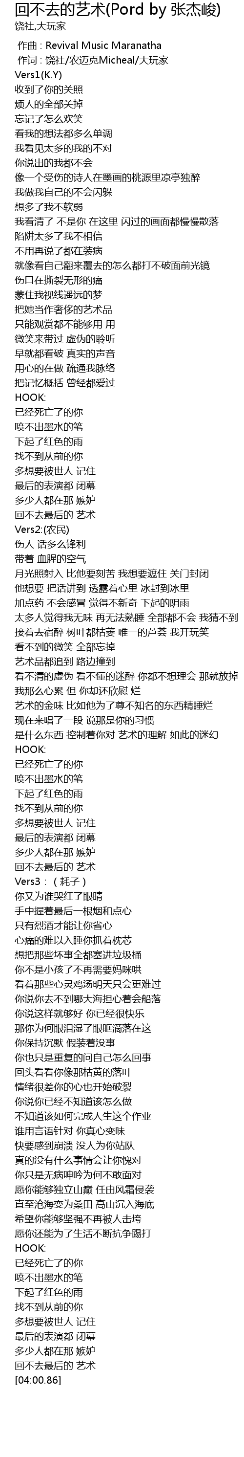 | [03:58.48] | 回不去最后的 艺术 |