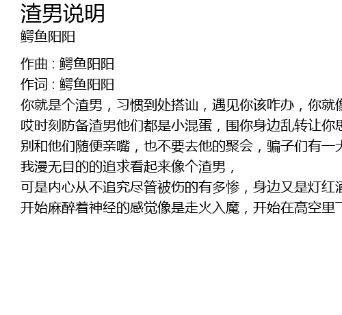 | 作词 : 鳄鱼阳阳 | |