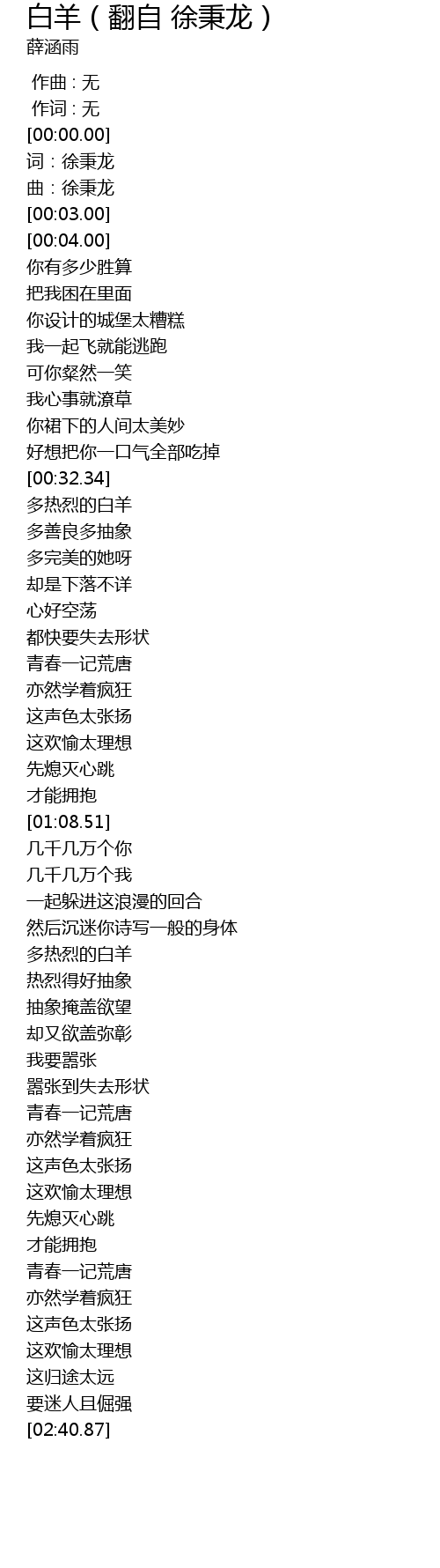 | [01:40.01] | 然后沉迷你诗写一般的身体 |