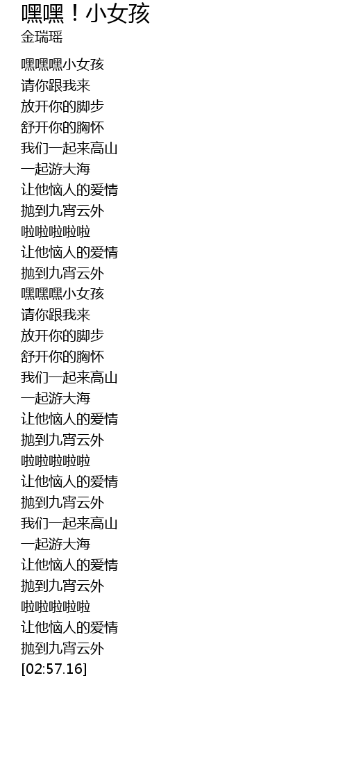 | [00:09.22] | 嘿嘿嘿小女孩 |