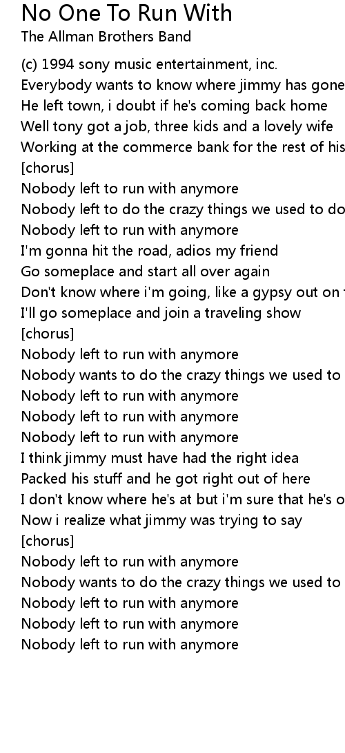 No One To Run With Lyrics